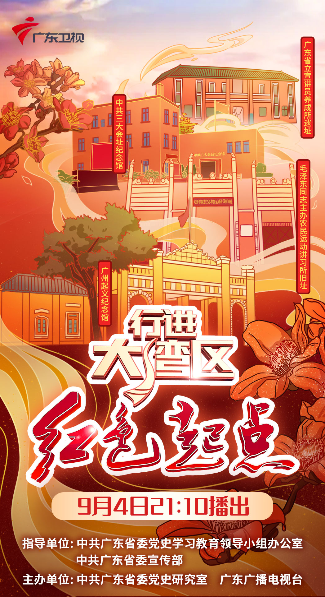 由中共广东省委党史学习教育领导小组办公室、中共广东省委宣传部指导,中共广东省委党史研究室和广东广播电视台策划制作的《行进大湾区》“红色起点”,9月4日晚在广东卫视首播第九集《星火续燃》,邀您共同行进广州越秀革命遗址,见证南粤红色历史,领略岭南文化之美。