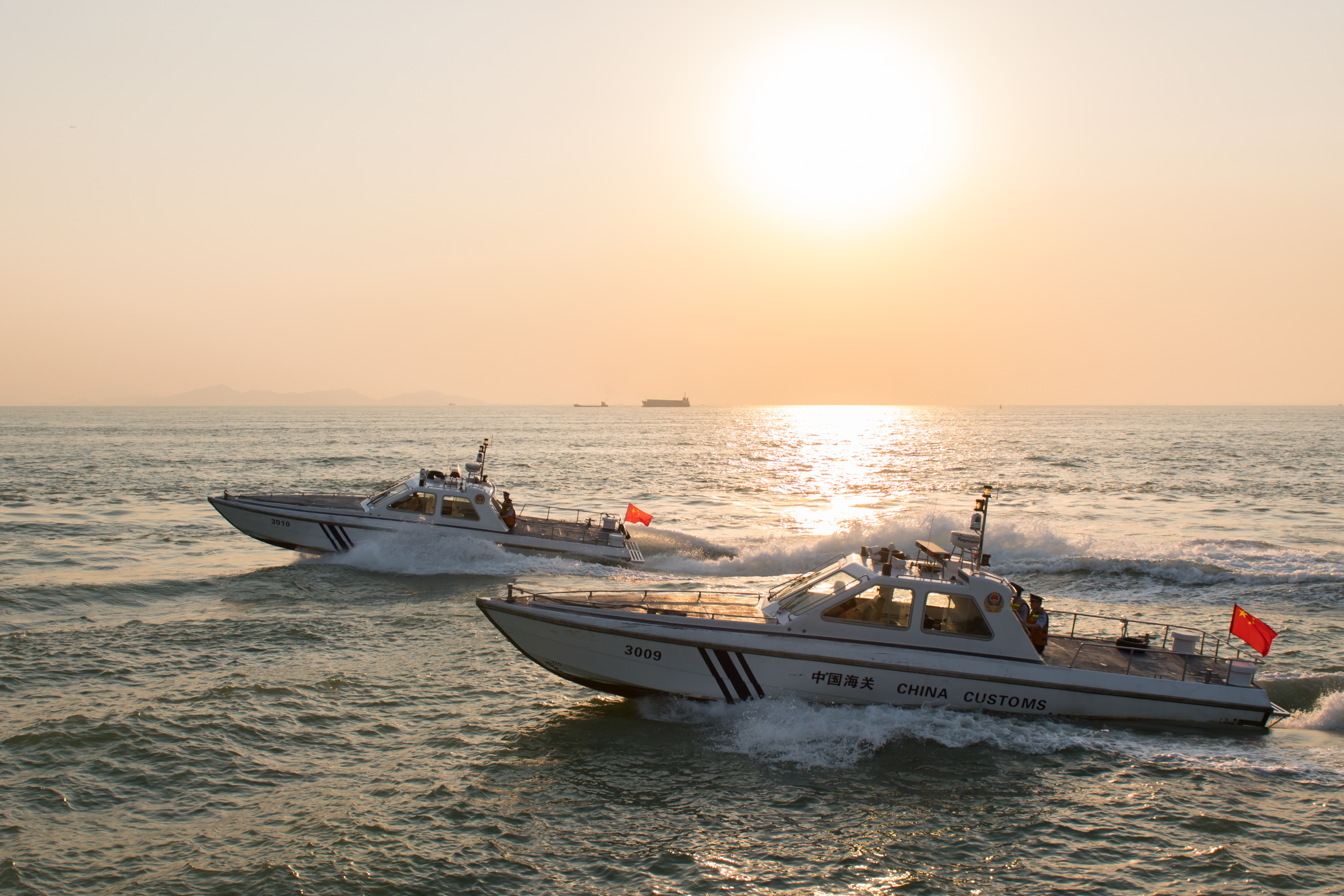 一个多小时后,车辆抵达深圳妈湾的一个小码头,关员们迅速下车、过闸,登上岸边的小快艇。飞速前进的快艇带起了海里的白浪,关员们习以为常,站在快艇内、甲板上稳如泰山。