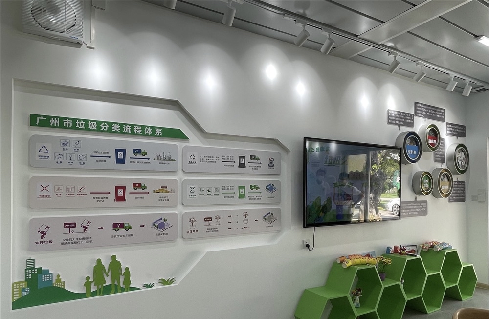 垃圾分类宣教展厅分为科普区及实践体验区等两大功能区,科普区内各类垃圾降解周期、垃圾处理流程、变废为宝展示区、垃圾不分类的危害等模块。