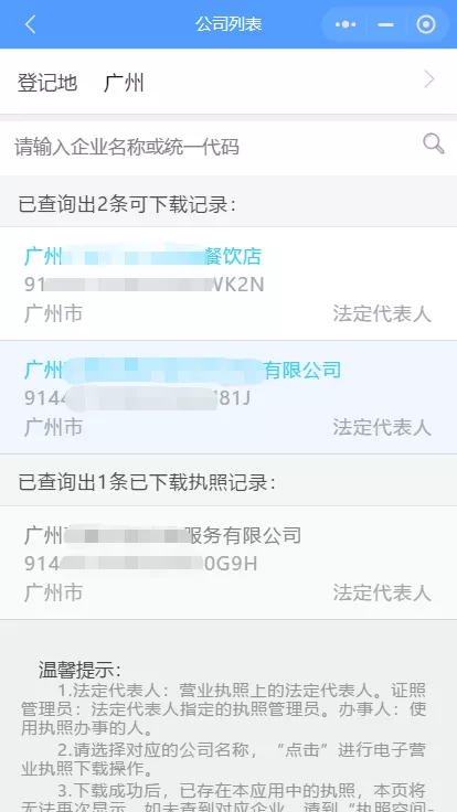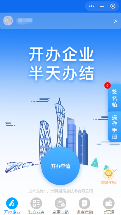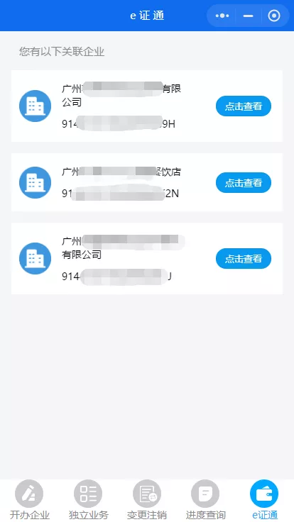 1、法定代表人(负责人)可通过微信搜索“广州市开办企业一网通平台”小程序,点击查看“e证通”。若名下有多个企业,需选择一个企业进行查看。