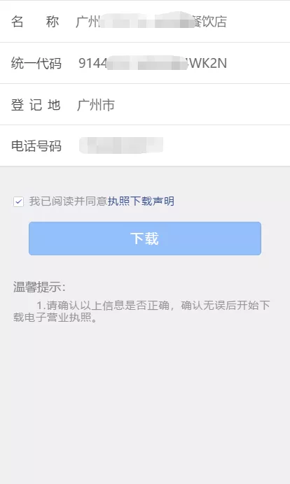3.申请人首次使用,需点击“下载执照”,录入个人姓名、身份证及手机号码等信息后即可完成下载。