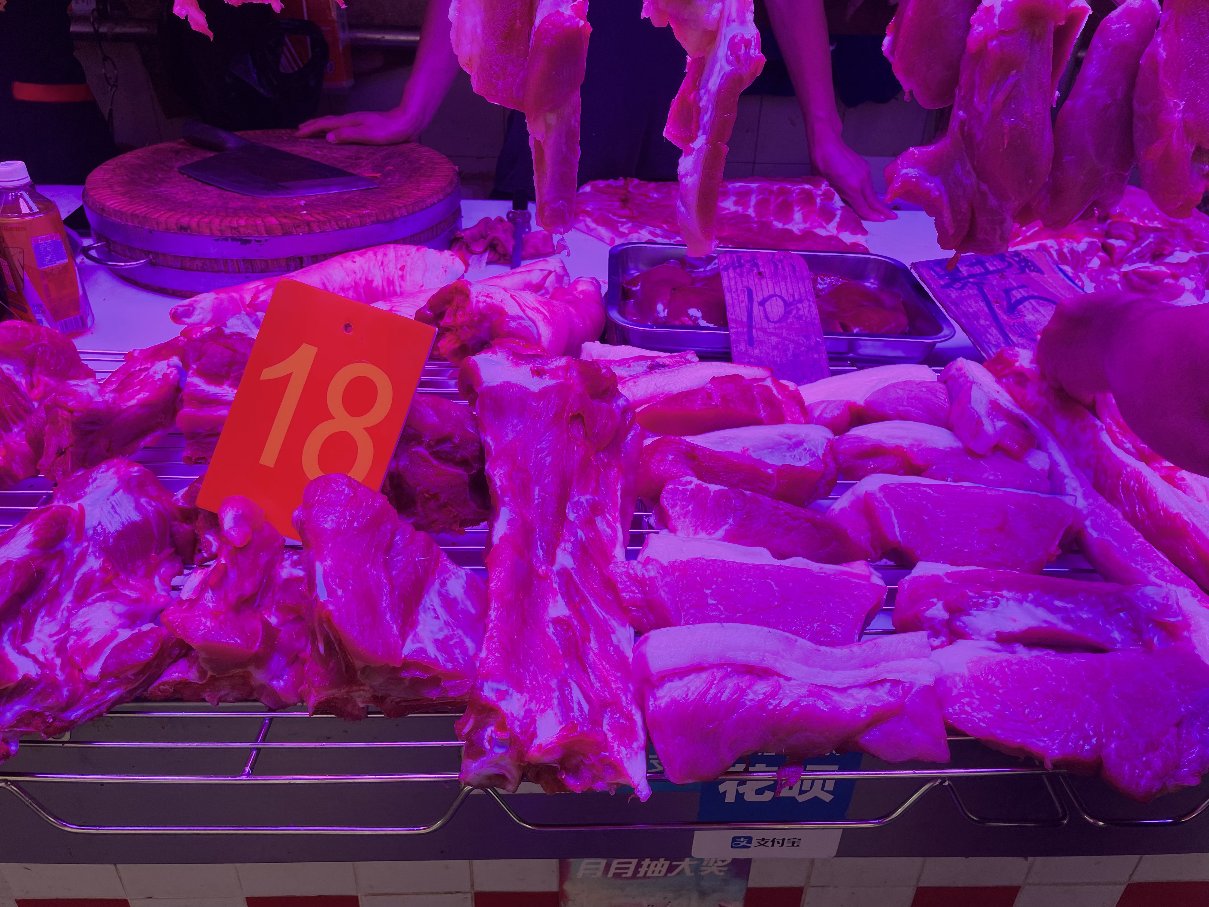 “上肉有时已经跌破10元,整体售价在每斤9-10元。”华润万家广州奥园店店总梅峰表示。其他猪肉品类价格也很便宜,瘦肉和脊骨的售价为16-17元/斤,排骨为26-27元/斤。
