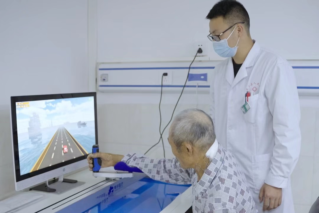 骨科手术后,康复锻炼可促进神经的进一步恢复,减少肌肉关节的萎缩。梁和胜与正在该院帮扶的康复医学科医生关红丽沟通,联同骨科的谢主任、何主任共同为苏伯制定康复治疗方案,减少患者截瘫后遗症。
