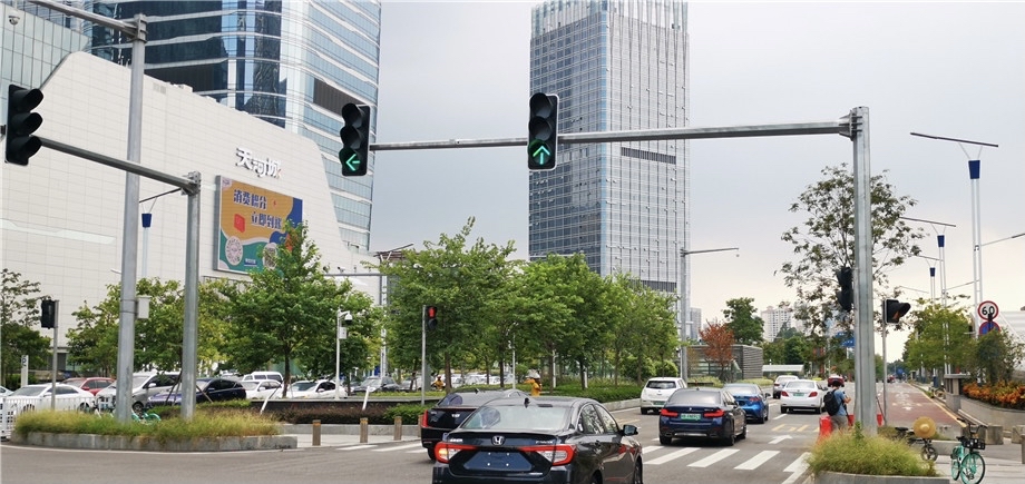 当天下午3时多,随着工作人员将设置在汉溪大道万博商务区北半幅西行路段(万博二路至番禺大道)与万博二路相交处的围栏打开,汉溪大道万博商务区北半幅西行路段(万博二路至番禺大道)正式开通,车辆接连不断从万博商务区开往番禺大道、汉溪长隆、广州南站方向。