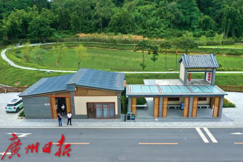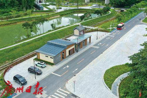 2021年9月2日,广州市黄埔区新龙镇,造型美观的麦村智慧厕所成为乡村公路旁的一道美丽的风景线。