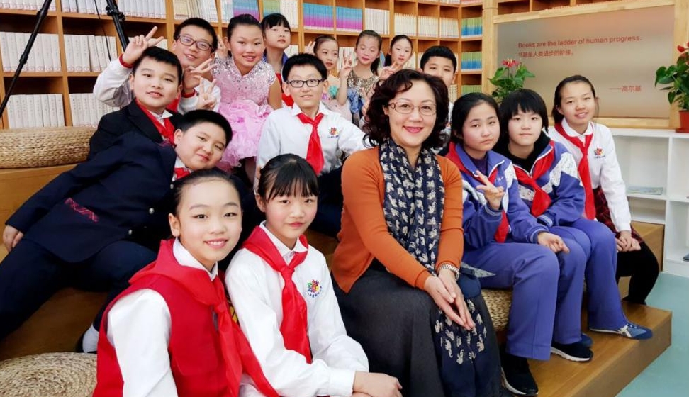语文学科带头人、小学语文教师培训专家吴琳(一排左三)与学生们在一起