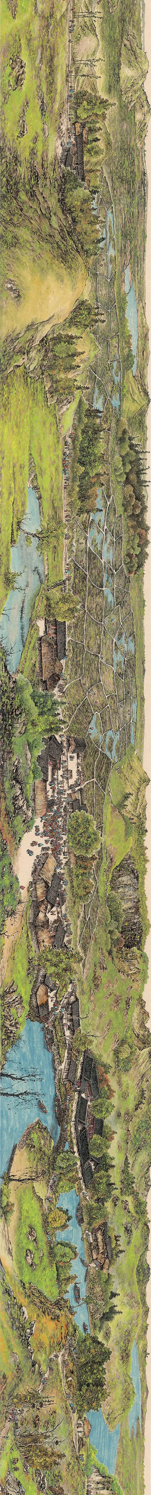 好的作品,总是在记录着,并且是在长久的历史记忆中,引发反思和思考。《湖广填川图》的亮相,既是一场跨越时空的见面,也是一场民族史诗的巡礼,我们将跟随精美的线条和明艳的色彩进入到几百年的历史的空间,去探寻和寻找那段久存的记忆。