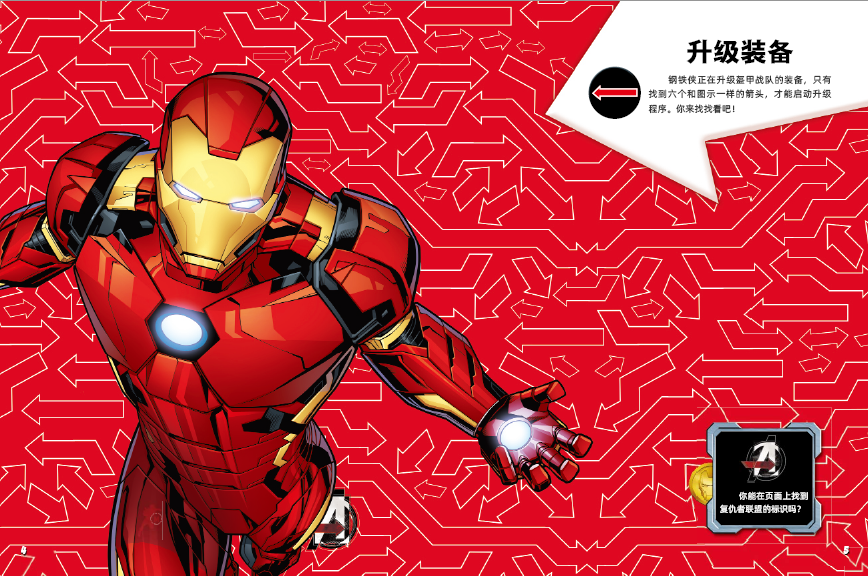 在这个仔细寻找和辨别的过程中,孩子的反应更敏捷,观察更细致,专注力也上了一个台阶。4重挑战任务大大提高了本书的可玩性,小读者闯关10个搜索游戏后,需要回到起点,再次搜索每个角落,收集金币,寻找神秘身影。多重挑战让每一次观察与发现都充满惊喜,贯穿超级英雄的冒险经历,让孩子总是找不够!