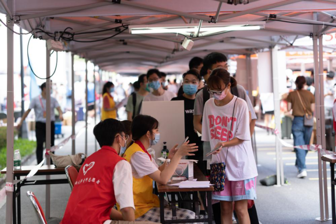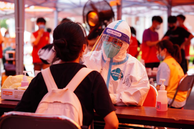 学校在迎新现场设置了健康观察区,在校门、报到点和学生社区派驻有医务人员,负责对新生进行核酸采样、体温检测、标本送检以及应急突发处理工作。