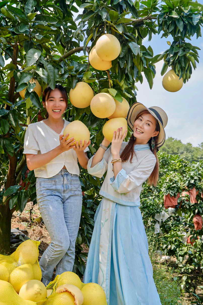 韶关市仁化县作为国家金柚产业集群片区,目前正积极打造“双区”和两个合作区的“果盘子”基地。白露时节,仁化县省级现代农业产业园的长坝蜜柚进入采收期,满山金灿灿的蜜柚高挂枝头,果农正忙碌着采摘、发货及招揽体验游客,农民们在投身乡村振兴中共享甜蜜的“柚惑”。