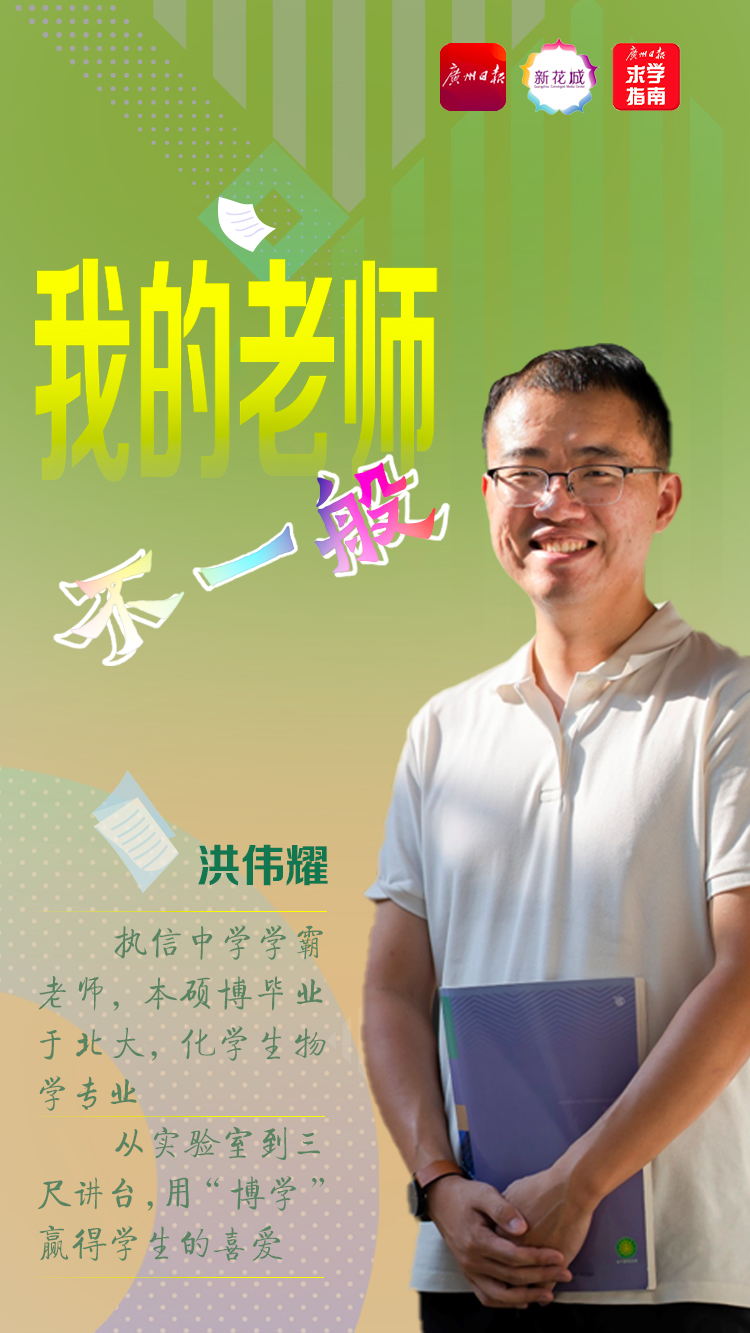 近年来,清北学霸从事基础教育已不鲜见,但依然能得到很多关注。而对洪伟耀而言,从实验室转向中学的三尺讲台,这并非一个艰难的选择。“毕业时,正好执信中学来北大招聘老师,我和校长、老师们交流了一下,认为这里也是一个非常好的发展平台。”洪伟耀说。