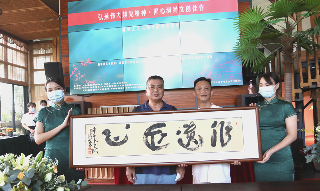 出席本次活动的大师包括张民辉(国家级牙雕传承人)、曾昭鸿(国家级榄雕传承人)、谭广辉(国家级广彩传承人)、苏星(国家级漆画家)、尹志强(省级玉雕传承人)、苏广伟(省级打铜传承人)、张庆明(省级端砚传承人)等。