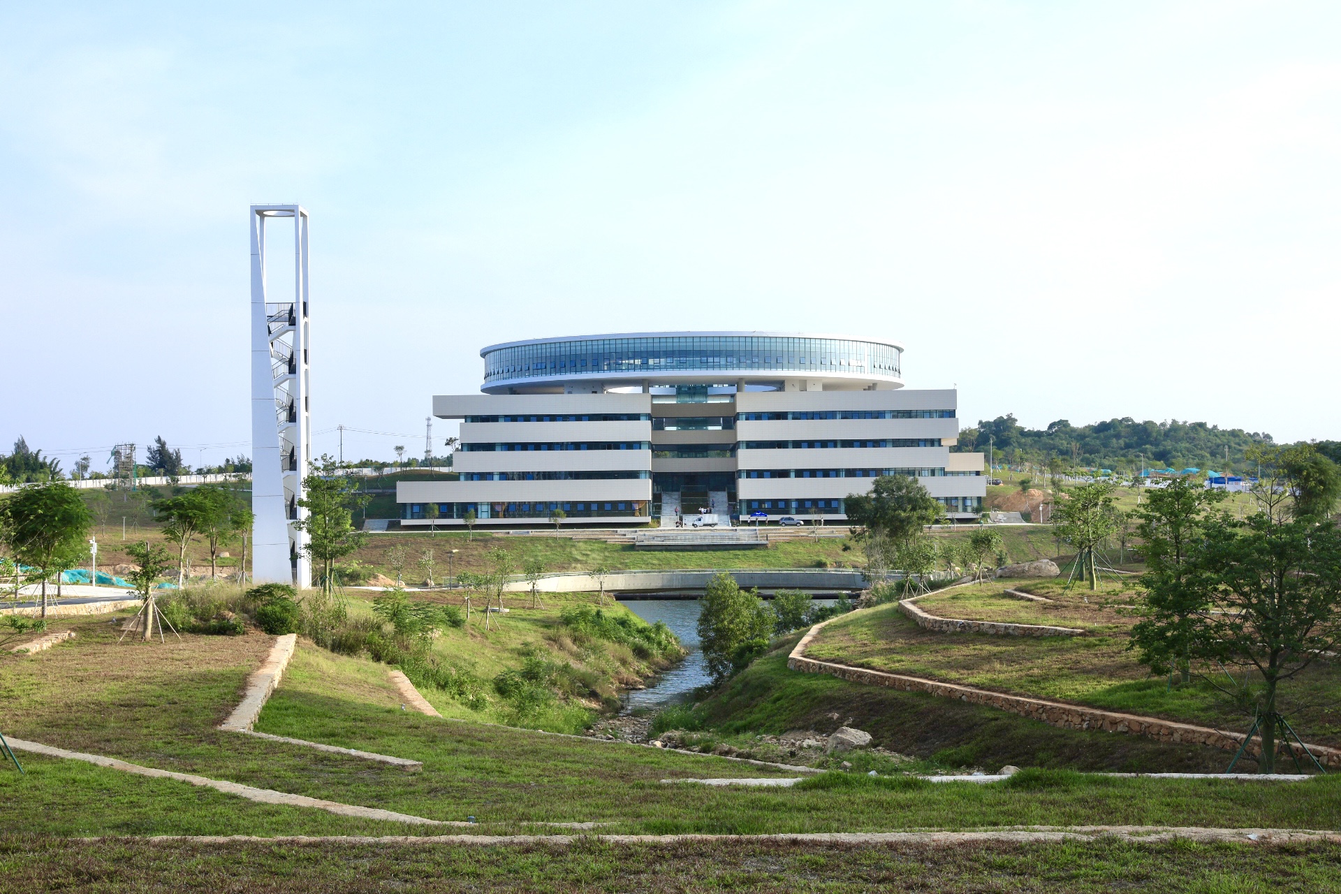 校区内,随处可见绿地、湖泊和景观。校园内现在已建设好行政楼、教学楼、实验室、图书馆、训练馆、体育馆、礼堂、学生宿舍、教师公寓、学术交流中心等建筑,许多建筑都极具特色。比如,校内标志性建筑“天圆地方”图书馆,就拥有360度的圆形阅览区。