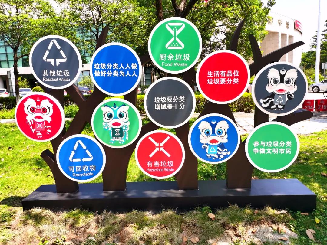 垃圾分类可以改善人居环境,促进生态环境绿色、可持续发展。近日,广州市增城区荔城街在区图书馆周边设置了四个广州垃圾分类标识小品、四个垃圾分类宣传雕塑进行垃圾分类主题微造景,让这些垃圾分类吉祥物、雕塑小品担任街头垃圾分类“宣传员”。