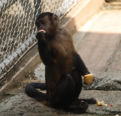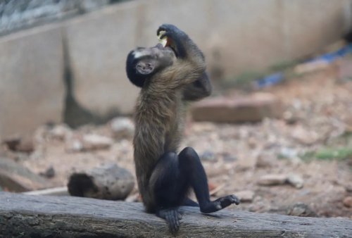 然而,它们并不只是会用这些迷惑行为和表情来“吸粉”,还有它们身怀的绝技,像飞檐走壁,可以快速地从一边“飞走”到另一边;啃鸡爪,黑帽悬猴是杂食动物,水果在它们的食物中占有很大的比重,它们健硕的下颌,让它们比其他悬猴可以取食更大的果实、植物、种子、鸡蛋、昆虫等,为此,保育员每天要为它们准备新鲜而丰富的食物;拆,黑帽悬猴有多能拆,看看它们的邻居家就知道了,品种猴展区的其他5种猴家里是树木茂盛、绿草成茵,甚至还有花开现象,但唯独黑帽悬猴展区内,可以说寸草不生……为什么会这样呢?因为它们拔草和拆家的速度超乎想象!动物园会定期对动物的生活环境进行丰容,即栽草种树、搭建玩耍架子,但架不住黑帽悬猴聪明、调皮,它们太会玩了。