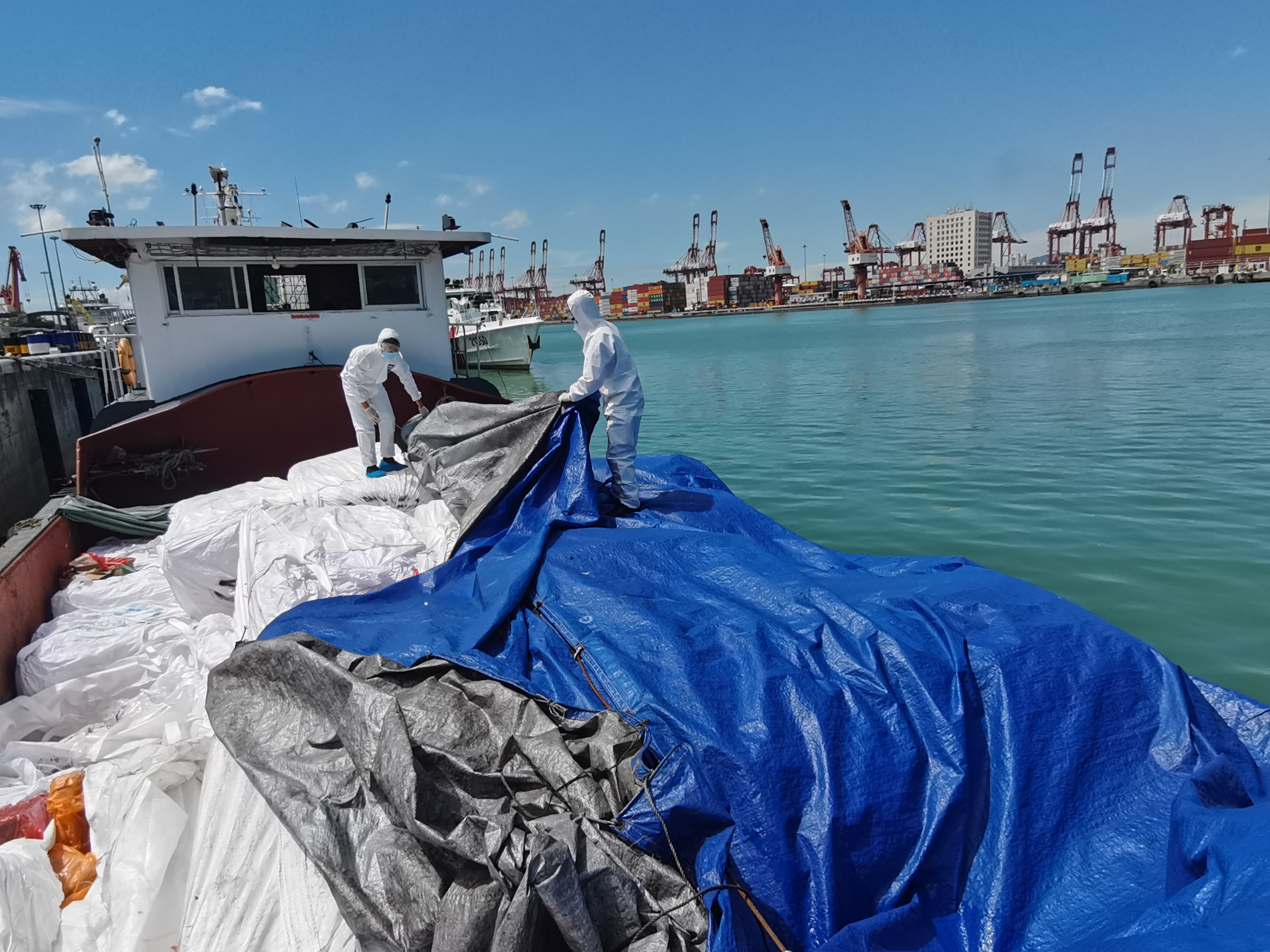 海警执法员依法登临检查,经查,船上载有牛肚、凤爪、羊颈肉、冻带骨羔羊肉等冻品共计7308件,重110吨,且没有合法货物来源证明,涉嫌走私冻品,涉案价值约600万元。同时该局协调南山疾控中心对船上货物进行消杀和抽样检验,排除海上疫情输入隐患。