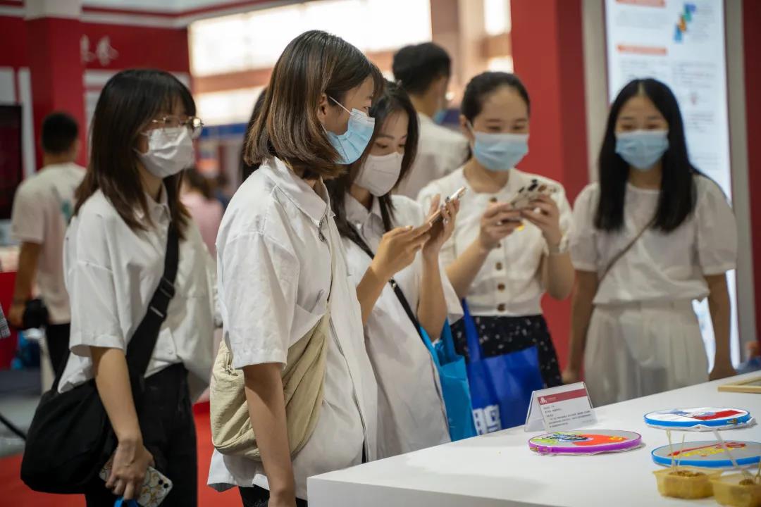 在会展现场,广东岭南职业技术学院博雅教育学院学生广绣、剪纸作品备受观众们喜爱。此外,该校药学专业的学生们还现场为观众们展示了中医针灸技术,也非常受欢迎。