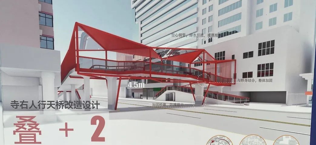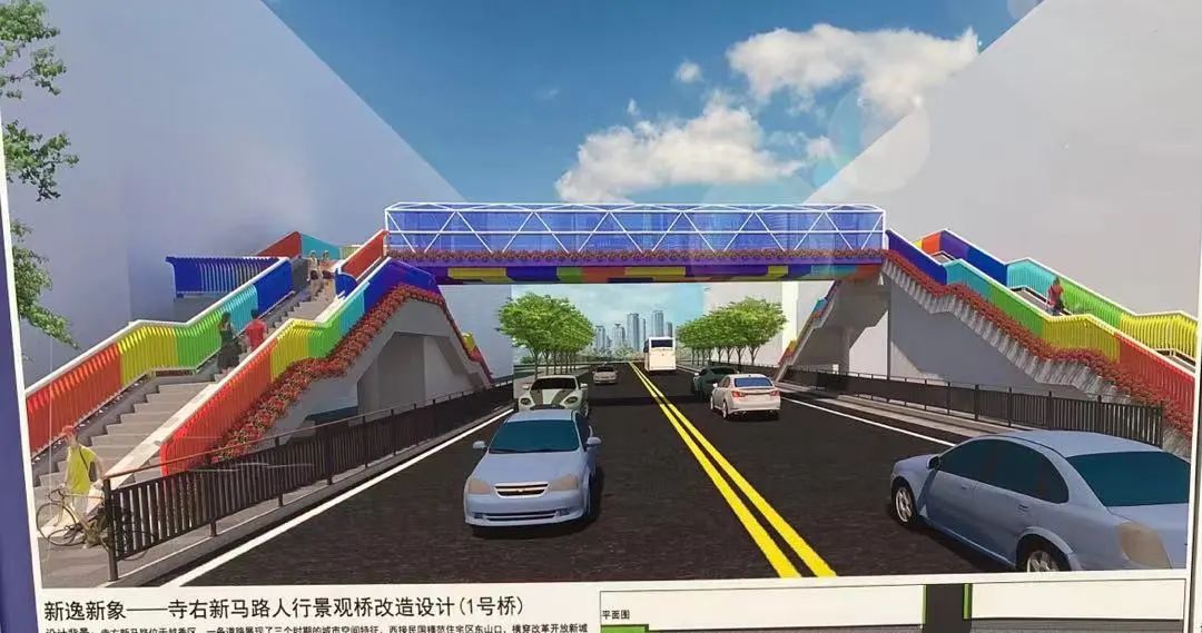 据了解,寺右新马路位于越秀区。一条道路展现了三个时期的城市空间特征,西接民国模范住宅区东山口,横穿改革开放新城综合开发范例五羊新城,东至现代CBD珠江新城。作为越秀区城市更新改造补短板项目,此次改造的两座人行景观桥位于寺右新马路3号、4号附近,靠近达道路方向,是寺右新马路的重要空间节点,拟通过优化景观桥的功能形态,形成“一桥一景”的布局,充分满足人的需求,塑造有活力的街道景观。