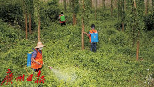 图为现场开展薇甘菊防治工作。