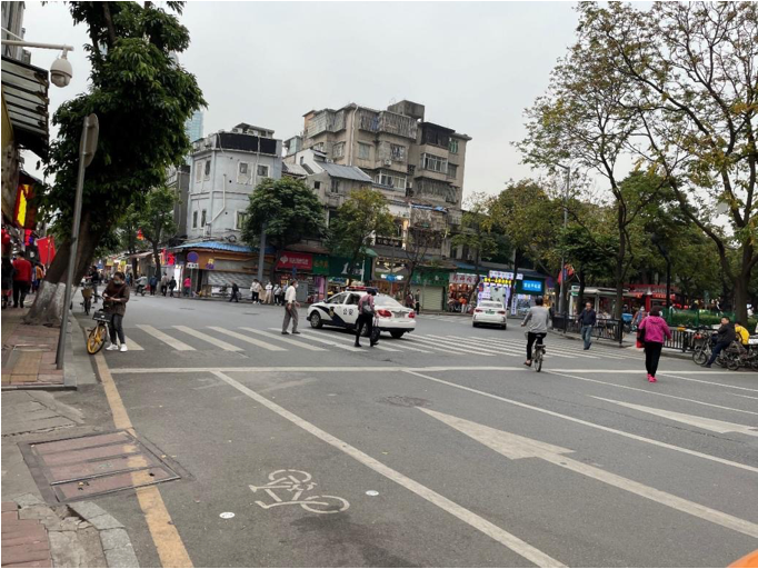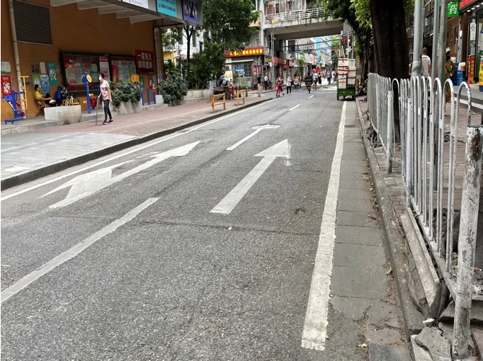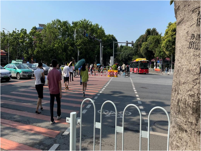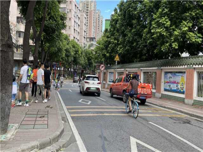 治理前,这一交叉路口非机动车、行人流量大,人车冲突严重;交叉口北往南无非机动车道,非机动车与机动车冲突严重。