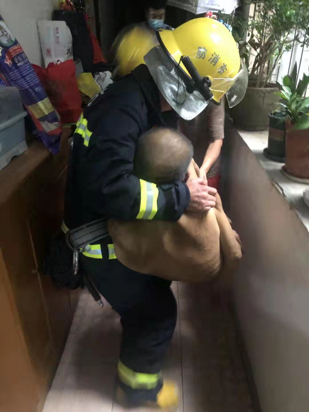 “我们托举过程发现老人已经全身发软,意识有些模糊,无法主动配合消防救援人员。”消防员介绍,这时,指挥员迅速让一名消防员在七楼位置采用安全绳牵引,下坠到老人被困位置,与六楼屋内两名消防员合力将老人救出,随后移交给现场医护人员送往医院进行救治。