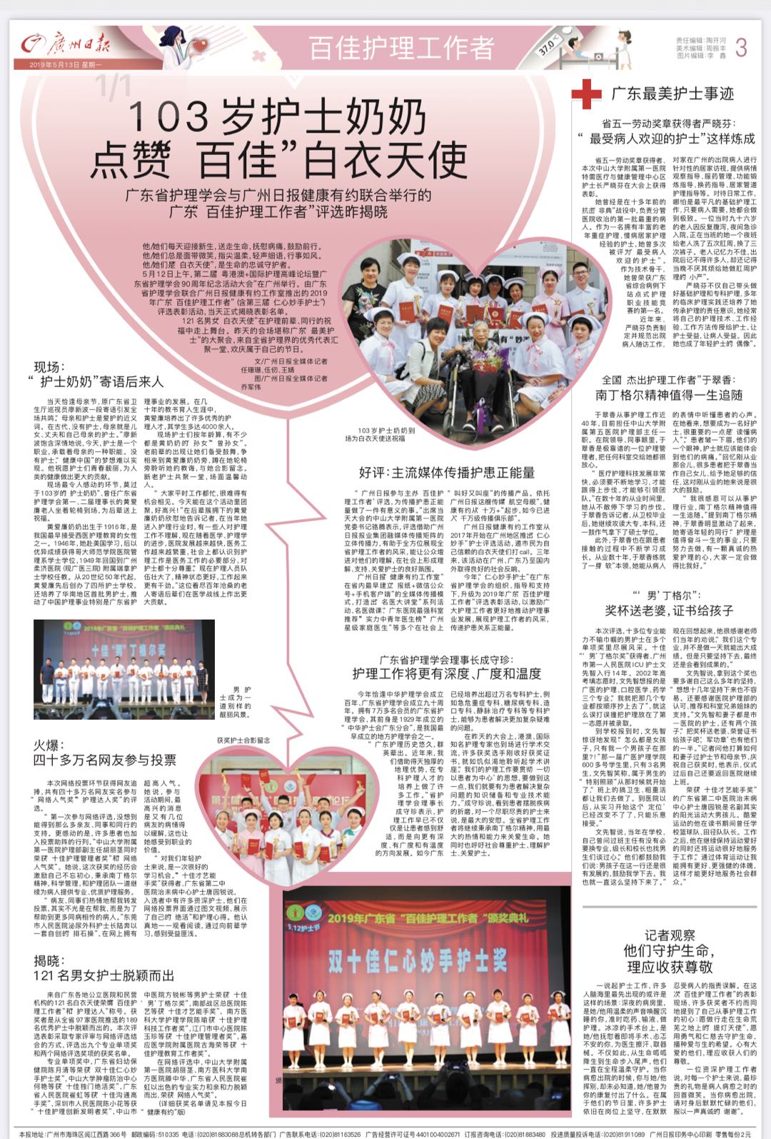 2019年5·12护士节,在由广东省护理协会与广州日报健康有约工作室联合举行的广东“百佳护理工作者”(含第三届“仁心妙手”护士)评选表彰活动上,时年103岁的黄爱廉教授坐着轮椅到场为后辈们颁奖,并在护士节前夕接受了广州日报的独家采访。