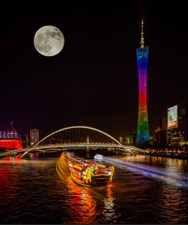 夜晚赏月,白天市民游客则可以选择“水上茶居”主题船上品尝“一盅两件”,打卡海心桥,欣赏珠江两岸美景。游船安排有充满时代气息的豪华游船“信息时报号”和古色古香的仿古游船“南海神号”,船舱内部全新装饰布置,将广府早茶文化、珠江游结合起来,增添游船趣味。