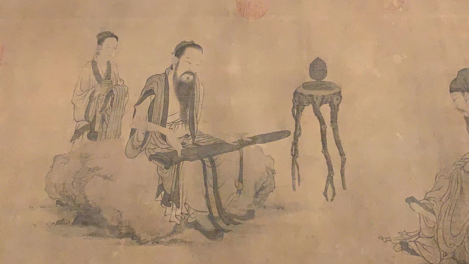 本次展出的作品分为“避世高逸”“宴居幽兴”两个单元,包括五代周文矩《琉璃堂人物图》,也就是我们原来熟知的韩滉《文苑图》,传宋徽宗赵佶的《听琴图》、南宋李唐的《采薇图》、元代王振鹏《伯牙鼓琴图》、明代文徵明《兰亭修禊图并书兰亭序》等,既表现了那些拒绝入仕或弃官退隐之士不慕名利、洁身自好的道德追求,也涵盖了历史上不同时期、处境各异的读书人的风流韵事和高雅生活情趣。