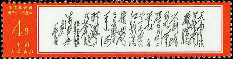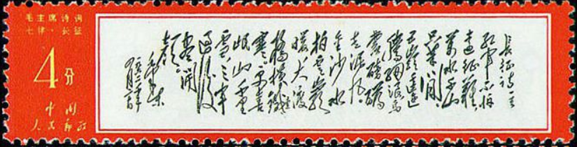 《中国工农红军长征胜利七十周年》纪念邮票的小型张上,这幅油画作为邮票图案居于中心位置,小型张边字上,配以毛泽东反映红军长征英雄气概的手书诗《长征》,书法和画作相互辉映,令红色主题集邮者爱不释手。