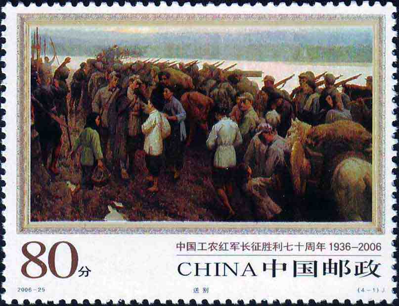 2006年10月22日,为纪念中国工农红军长征胜利70周年和弘扬长征精神,中国邮政发行2006-25《中国工农红军长征胜利七十周年》纪念邮票,全套四枚,小型张一枚。