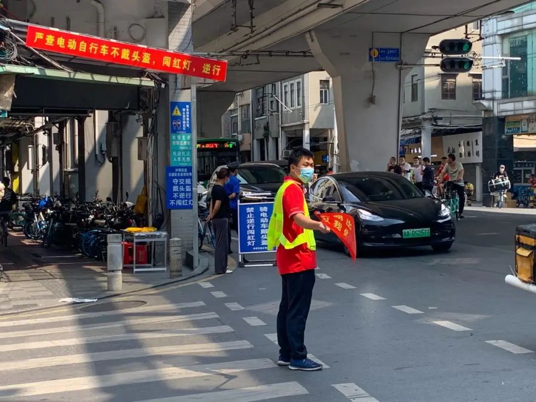 在重点路段,工作人员红灯时拉起警戒线,引导路人安全过马路。对当事人闯红灯,且过马路未走人行横道线的违法行为进行批评教育,强化行人、非机动车依法安全出行意识。