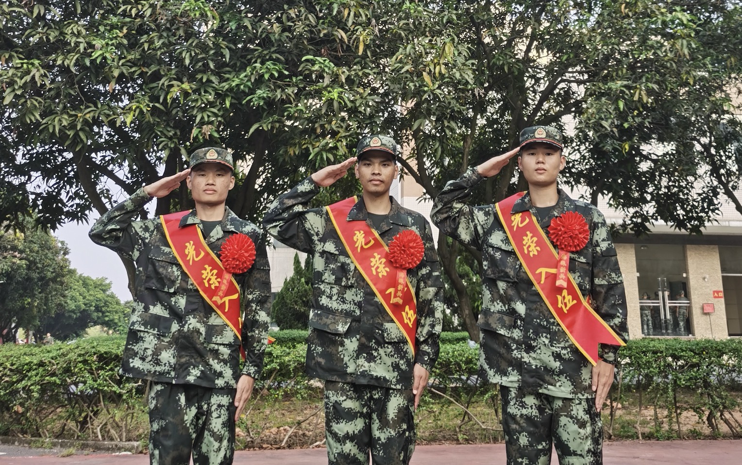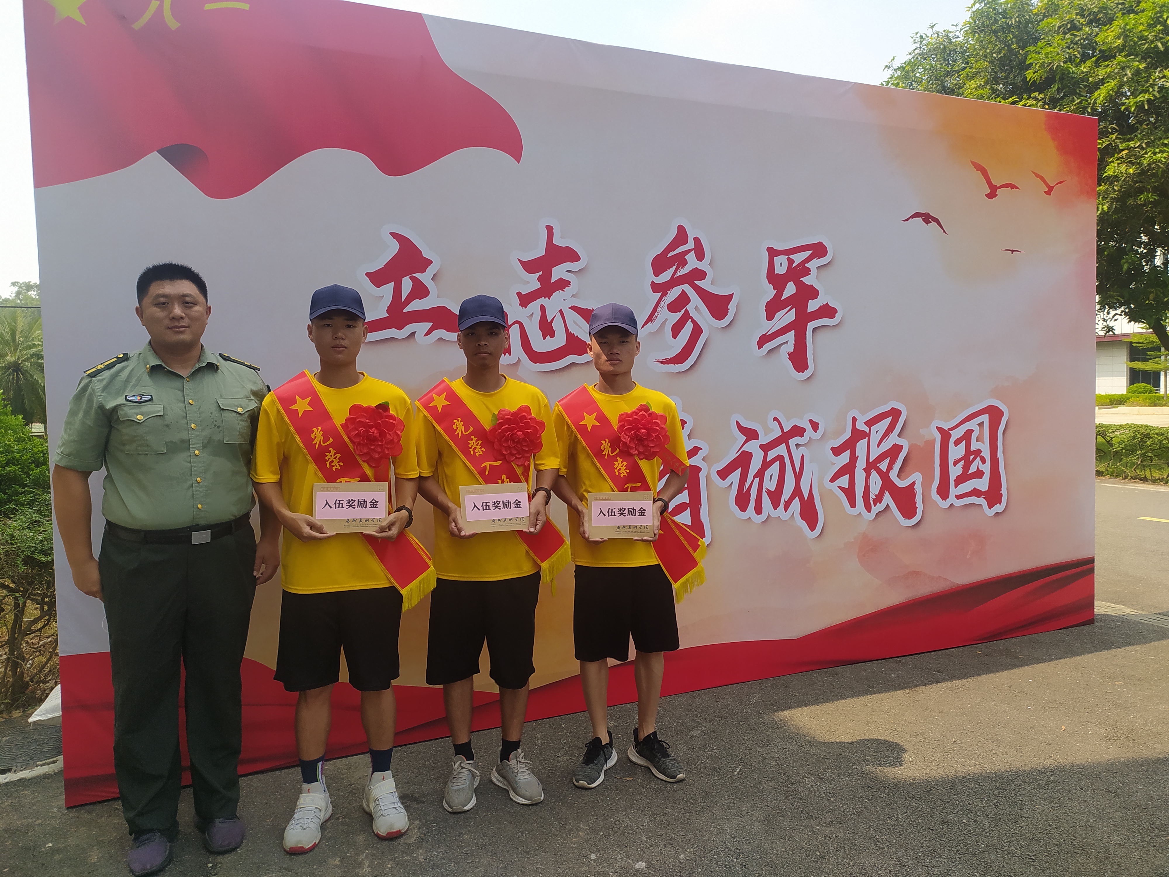 9月17日清晨,彭绍轩、杨万泉、邹雨宏身披戎装、佩戴红花和战友们一起从广州出发,以昂扬的姿态奔赴军营。