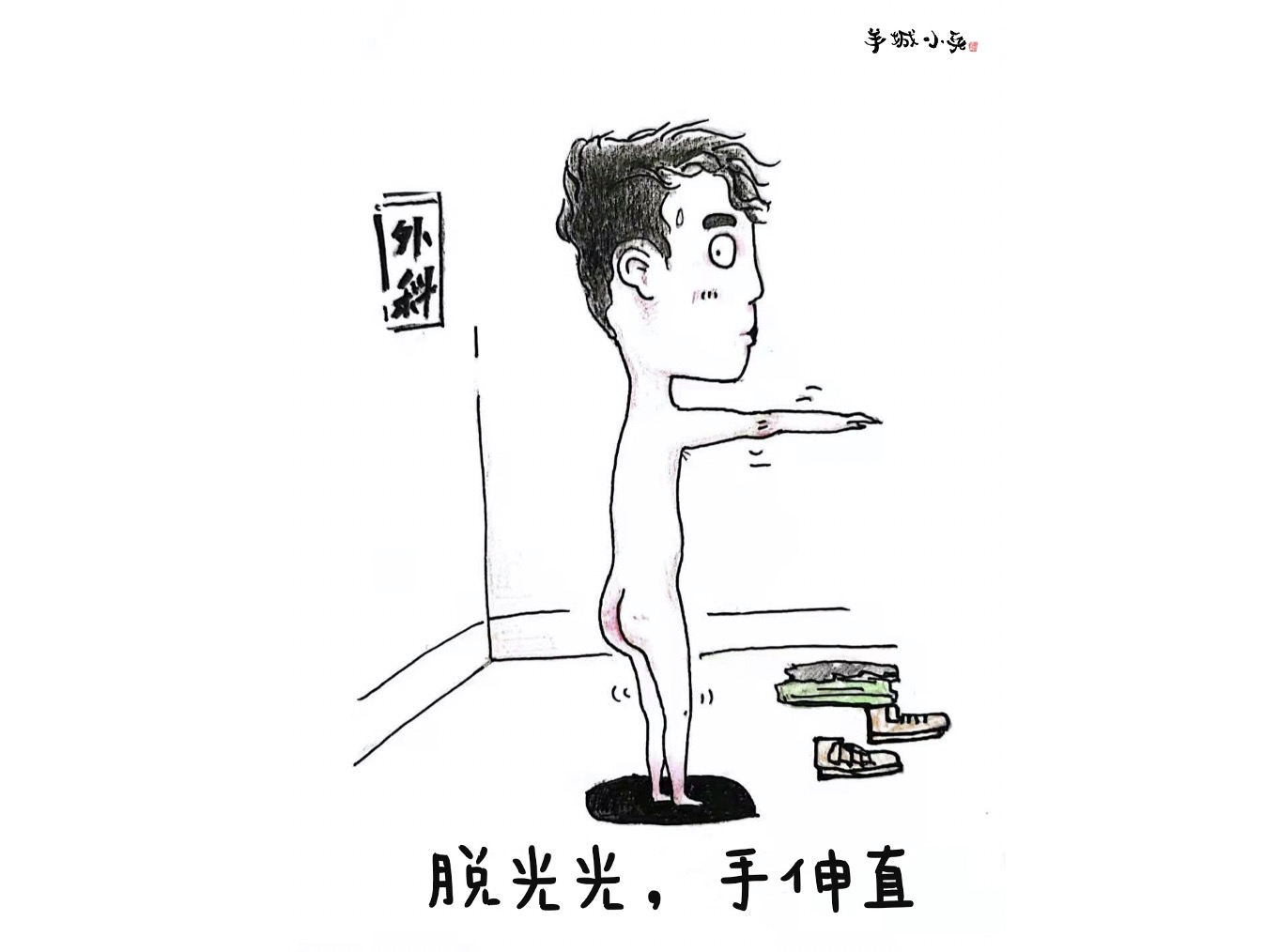“脱光光,手伸直”,一名烫着卷发的男生在征兵体检外科检查室中“瑟瑟发抖”的画面让人忍俊不禁。提起《羊城小兵从军记》中的这幅漫画,杨万泉说,报名前,他对征兵过程和军营生活都不是很了解,“第一次参加外科体检时听到要脱光,愣了一下,挺害羞的,有点紧张放不开”,但他没想到的是,这样的外科检查自己经历了三四次。创作设计时,这段令人印象深刻的“名场面”也引发了彭绍轩和邹雨宏的共鸣,于是便有了这幅漫画。