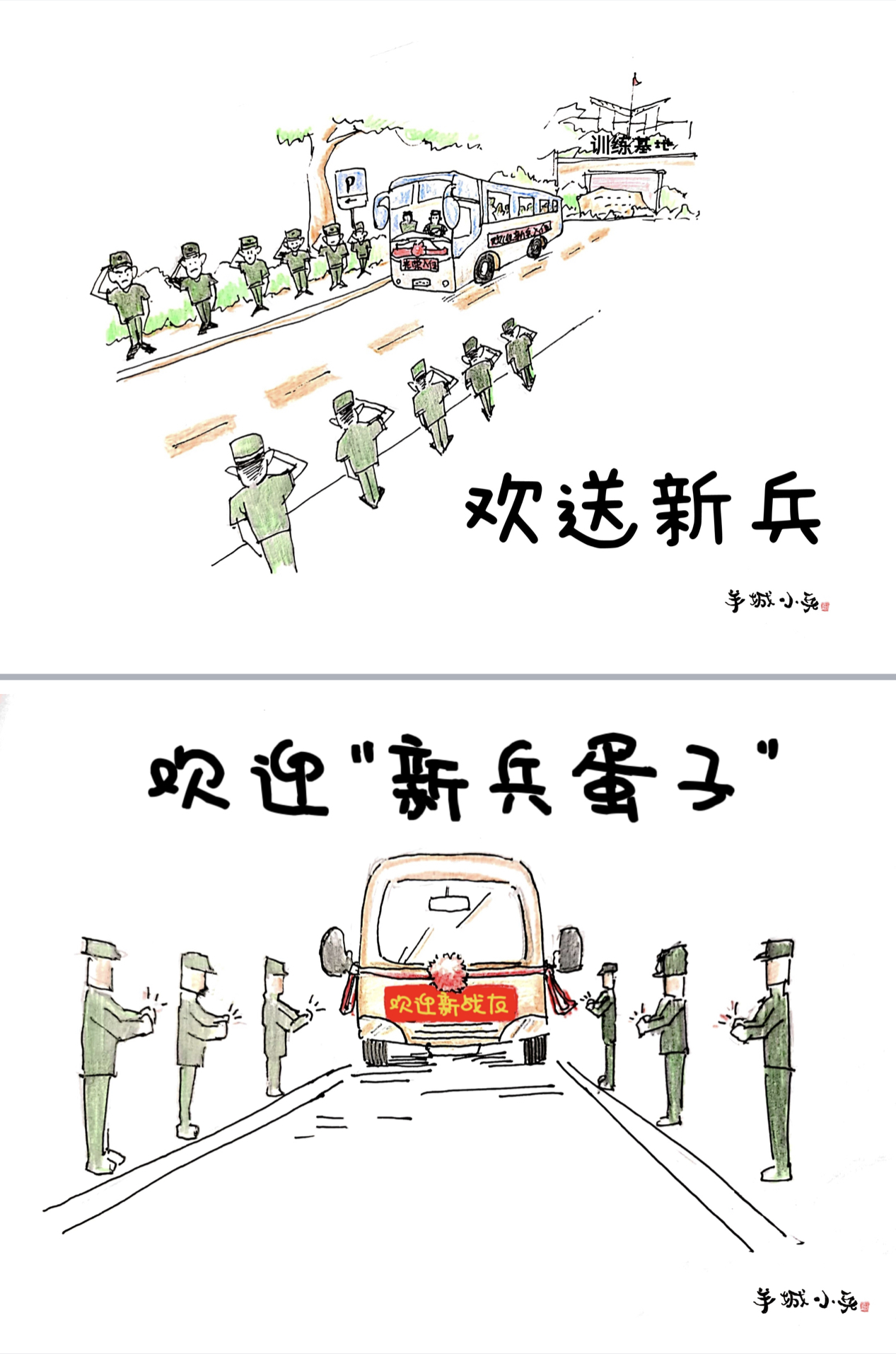 从一名社会青年到军营萌新,经历了哪些难忘的蜕变?连日来,毕业于广州美术学院的他们用一组手绘漫画《羊城小兵从军记》,记录下“兵之初”的点滴时光。