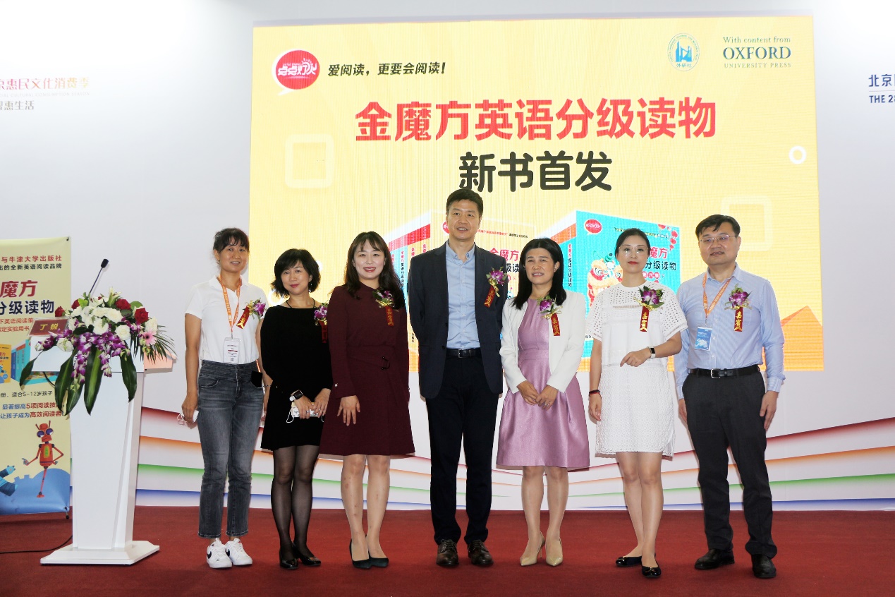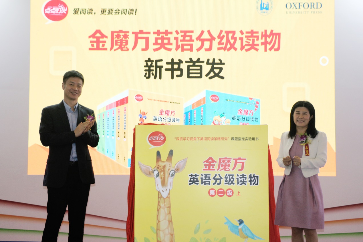 在本次活动上,外研社和牛津大学出版社共同揭开了“金魔方英语分级读物”新书的面纱。