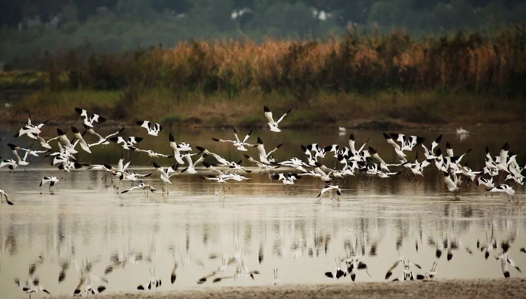 鸟类觅食区,总面积达到1100亩左右。这个区域水位相对较浅,大约在十厘米,方便了很多鸟类在这里觅食。每逢冬季傍晚时分,各类候鸟会聚集于此,捕捉各类通过水闸口从十八涌游进来的野生鱼类。