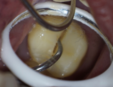 患者牙齿顺着裂纹用探针勾开的样子。