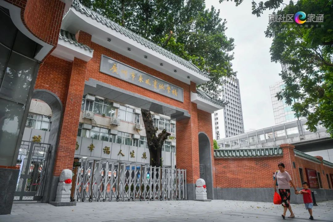 新建成的校门是与执信中学同出一脉的红墙绿瓦门楼,也意味着东风实验学校正式成为执信家族的一分子。
