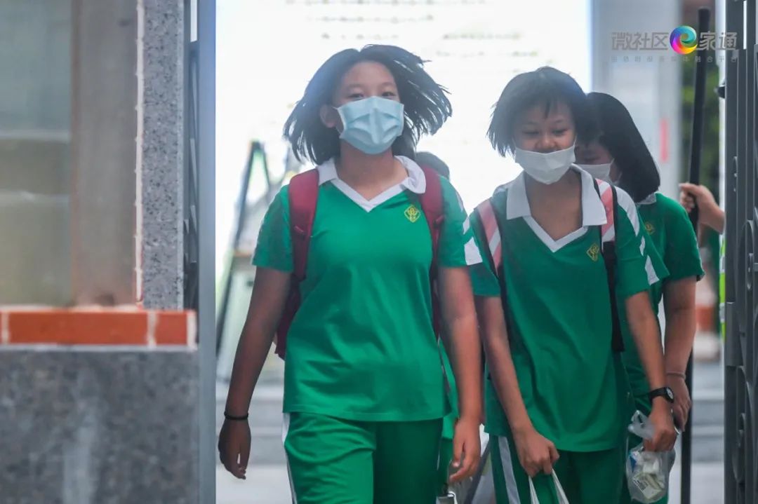 下午放学时段,小e更看到不少学生身穿执信学子最为熟悉的绿色校服“青蛙装”从校内缓步而出。