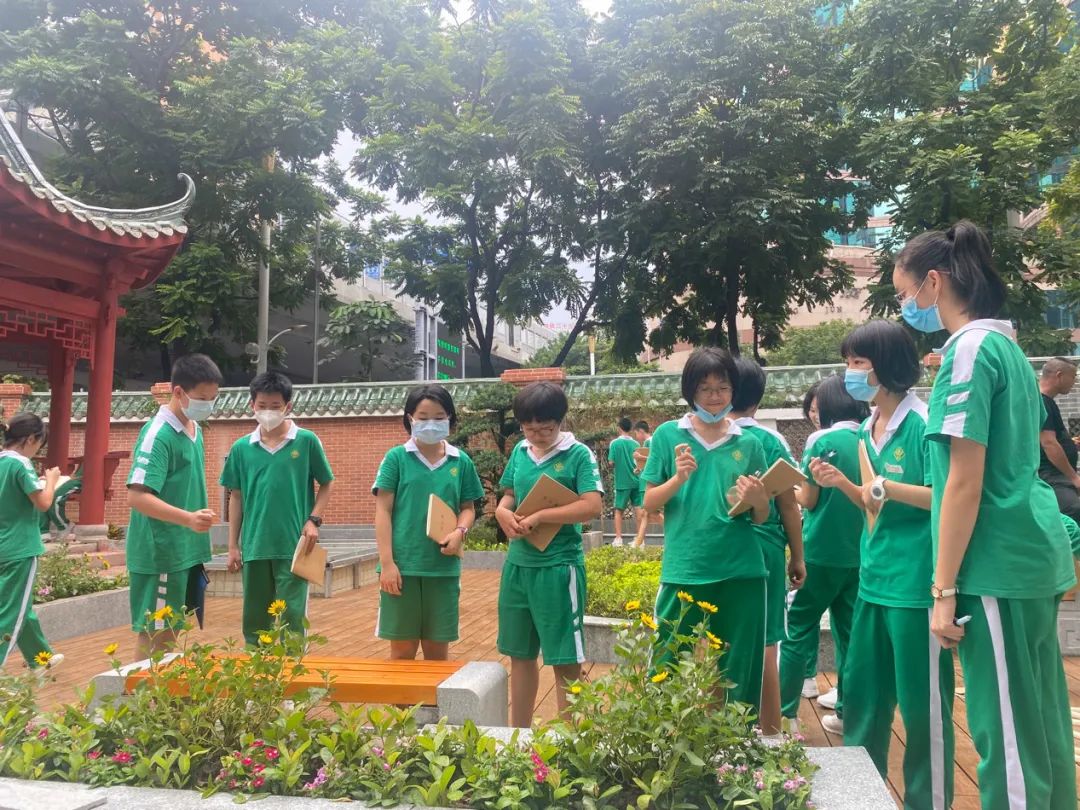 东风实验学校的学生在校内新建成的荷塘文化广场中进行采风(校方供图)