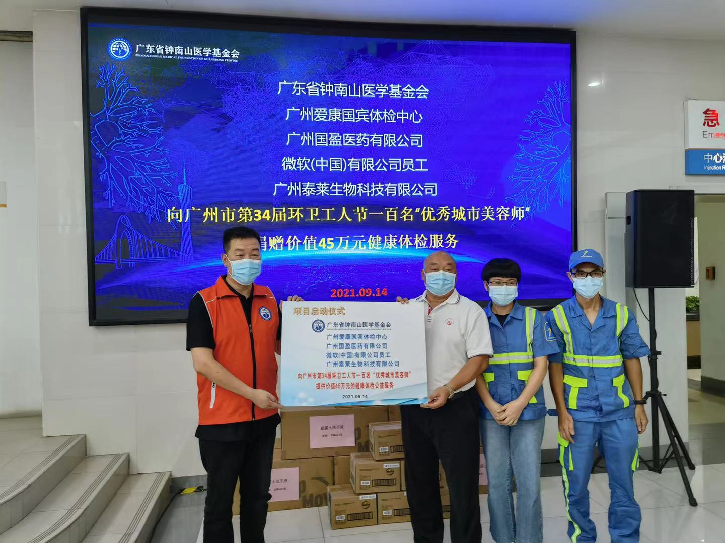 广州市第34个环卫工人节即将到来,为向城市美容师们表达感恩与关爱,日前,广东省钟南山医学基金会发起并主办广州市环卫工人公益筛查活动,首批提供的公益服务包括一批消毒防疫物资,以及为荣获广州市第34届环卫工人节“优秀城市美容师”的100名环卫工人提供免费的肺功能检查和泛肿瘤(以肺癌为重点)筛查。