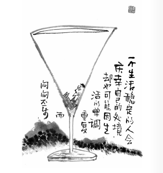 新书的亮点还在于创意人物水墨画家彭长征根据王蒙著作和演讲中的箴言金句,所创作的40多幅水墨漫画;每幅作品都源于王蒙的妙语金句,文字与漫画虚实相形,妙趣横生。