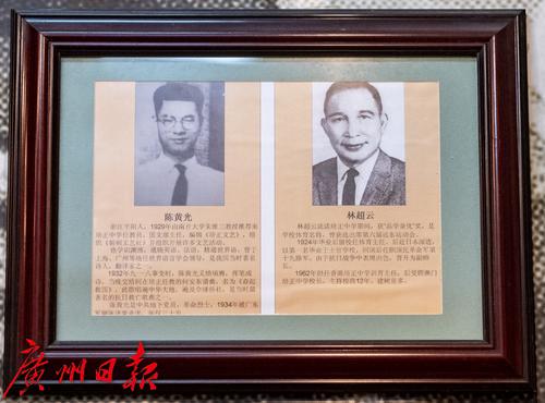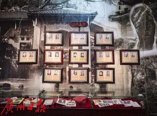 培正中学的校史馆里一代良师照片墙上的陈黄光等名师的照片