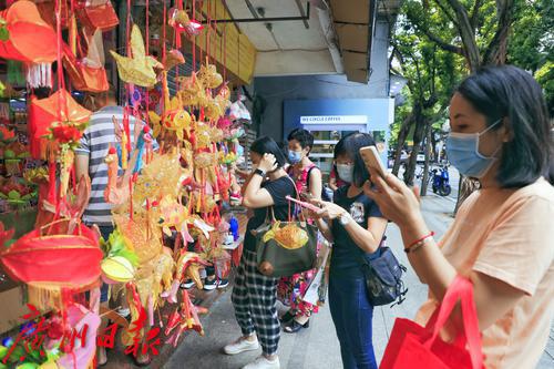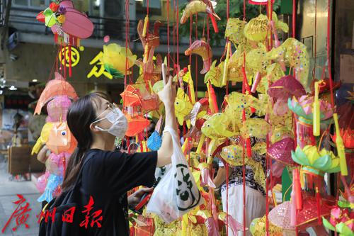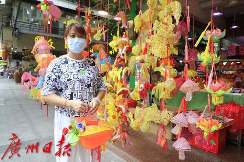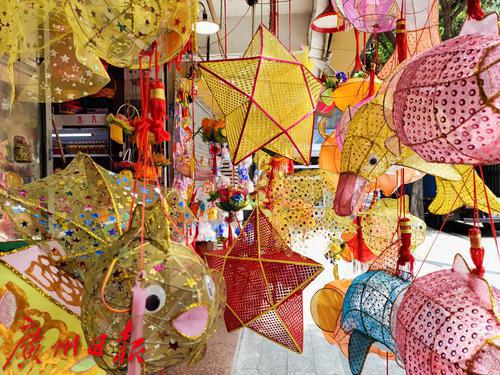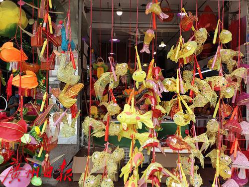 又到一年一度的中秋佳节,人月两团圆最开心的时间。除了吃各种口味的月饼,小朋友们更开心的就是有靓靓的灯笼玩。位于越秀区西门口光孝路55号的一口鲜果店,中秋节前兼营传统手工灯笼,是广州为数不多的手工灯笼店之一。 昨日,记者看到,沿街的店面挂满了各种造型和色彩的灯笼,有传统的兔子、金鱼、小象等动物造型,还有幸运星、蘑菇等创新款式,前来选购手工灯笼的顾客门庭若市,颇为热闹。 据老板娘琼姐介绍,她们这家店已经开了二十多年,工场在鹤山乡下,所有灯笼都是由70多岁的老师傅手工制作。因为手工制作工序复杂、耗时长、师傅年纪大,年轻人又不大愿意参与,所以上货量并不大。一年的制作就在中秋节前一个月左右开始上市售卖,每年大概能卖一两千个。 记者看到,每个灯笼的标价在38-168元不等,带手柄和电池,买来即可开灯,非常有传统的节日气氛。有顾客表示,一年才一次,买几个回去可以让小朋友开心一年,很值得。中秋马上就到,喜欢手工、喜欢传统文化的市民不能错过啦!