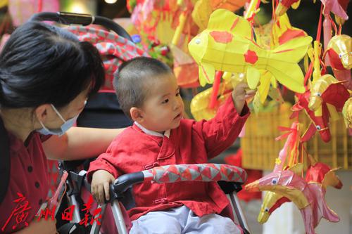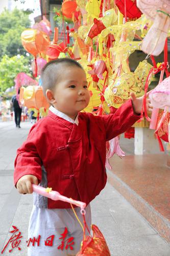 小朋友看到灯笼非常喜欢。