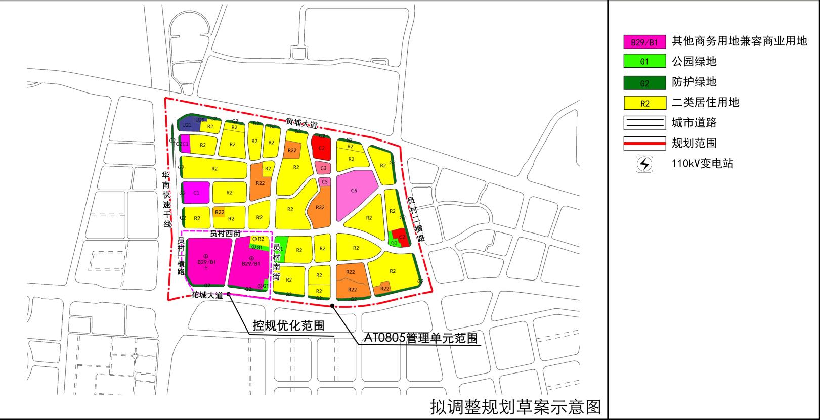 交通系统优化。衔接金融城西区在编控规,落实员村西街、员村南街、员村一横路、花地大道及地块红线范围的规划道路。