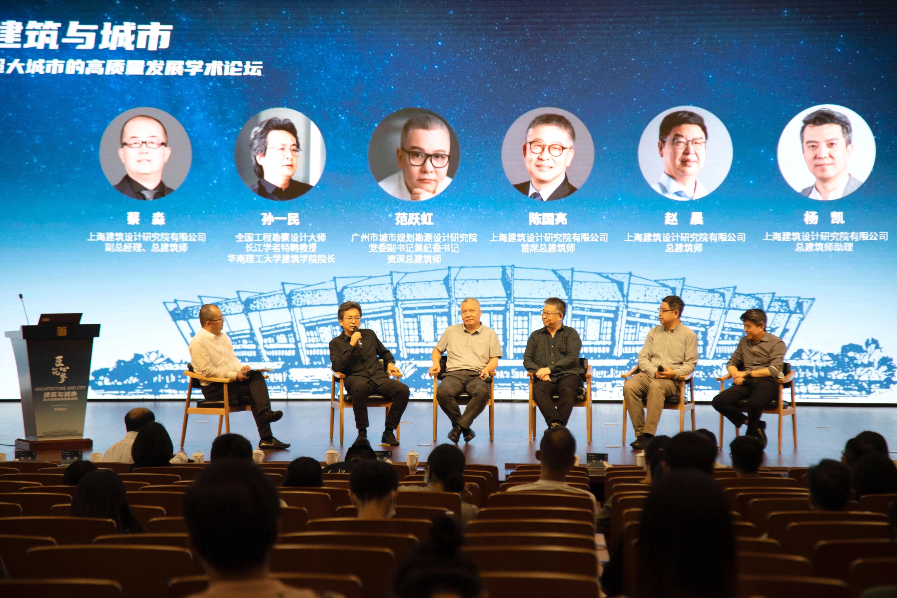 启幕仪式后,现场举行了“建筑与城市—超大城市的高质量发展”学术活动。全国工程勘察设计大师、华南理工大学建筑学院院长孙一民,上海建筑设计研究院有限公司首席总建筑师陈国亮,上海建筑设计研究院有限公司总建筑师赵晨分别作专家主题报告,穗沪两地建筑界知名专家学者共同探讨了城市与建筑的共生特性。