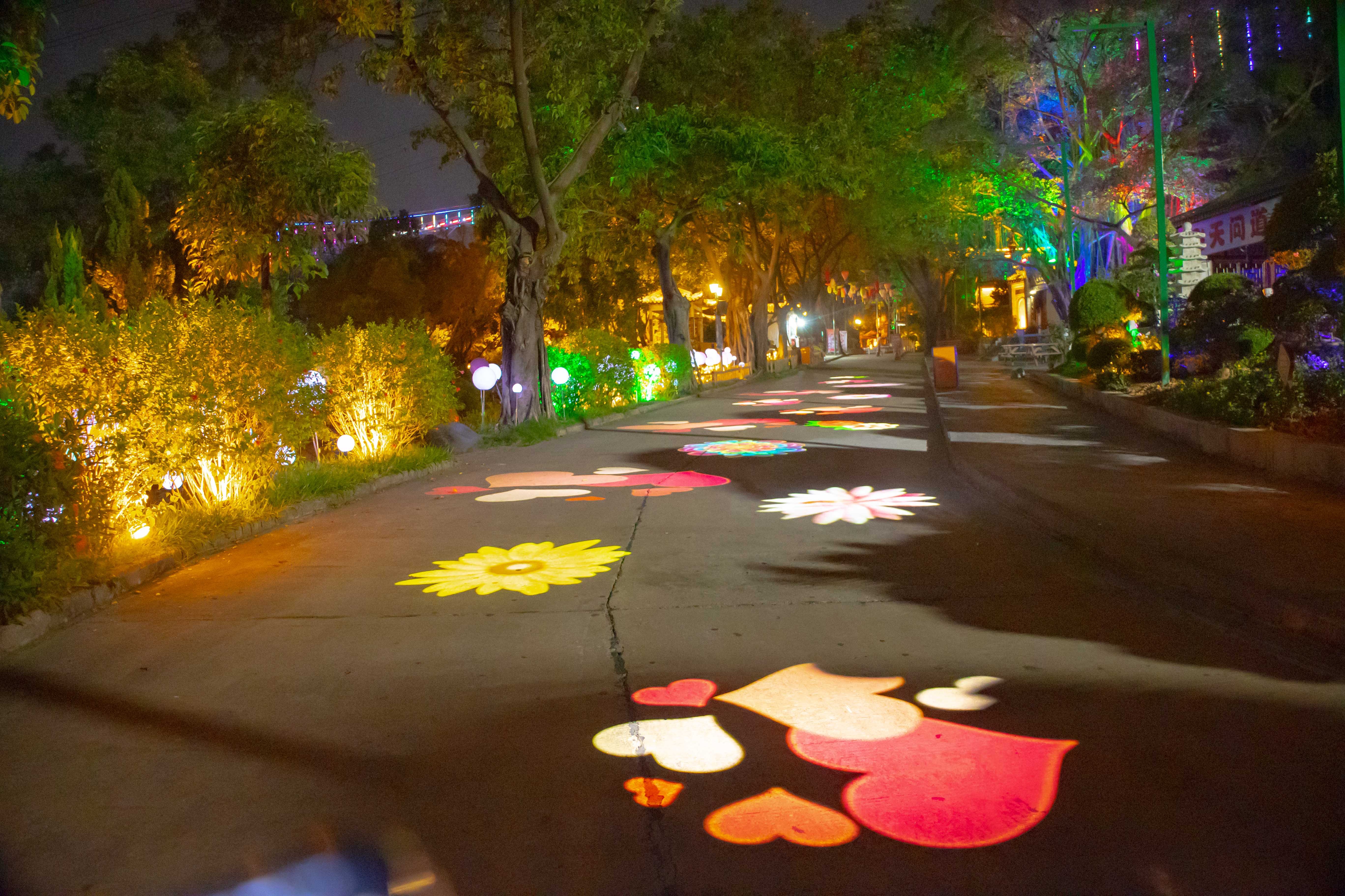 中秋假期,一家人少不了夜游,更少不了赏灯。东莞的夜,隐贤山庄是必去的打卡点之一,夜游、夜秀、夜宵、夜宴、夜宿,一应俱全。为了能够给游客带来别样的游玩体验,隐贤山庄打造了特色夜游项目,在原有的八大主题、六大剧场的基础上,充分结合项目特点对各个项目进行了灯光的主题亮化,通过升级改造,在园区内的夜景浪漫区、童玩区、探秘区、网络云蹦迪等悄然而至,给游客营造花样的夜景特色之旅。