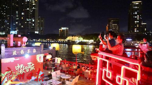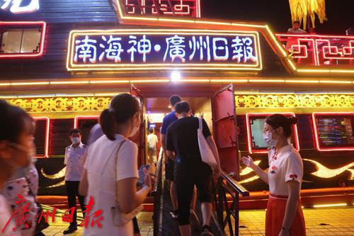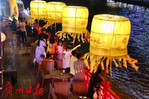 中秋到,夜游珠江游船火爆。9月19日夜,珠江两岸,灯光熣灿,夜游珠江“南海神·广州日报”号已近满座,人们早早预订好了游船登船,吹着江风,饱览夜景。