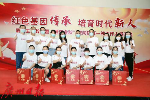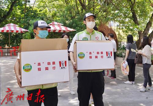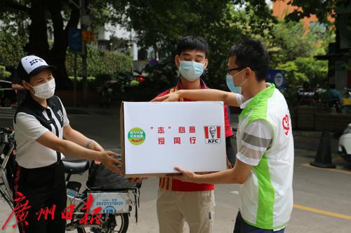 中秋期间,仍有不少社区工作人员、医护人员、环卫工人、志愿者坚守岗位。为向抗疫一线工作人员表示慰问和节日祝福,9月19日,团市委、市志愿者行动指导中心、市青基会结合“我为群众办实事”主题实践活动,发动市青年联合会、广州青年企业家协会、广州青年志愿者协会等单位,联合广东肯德基、广州酒家、黄埔华苑酒家等爱心企业,开展广州共青团关爱疫情防控一线工作者“‘志’心意 爱同行”中秋慰问行动,向越秀区、白云区部分街道社区的一线工作人员派送了包括午餐、热饮在内的“中秋关爱餐”。据悉,中秋3天假期里,志愿者每天都会向他们送上1份暖心的中秋关爱餐。